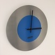 Wandklok rond, Blue Lagoon, diameter 34 cm, met blauwe RVS schijf en grote zwarte wijzers. Zeer mooi een echt pronkstuk voor het hedendaagse interieur.